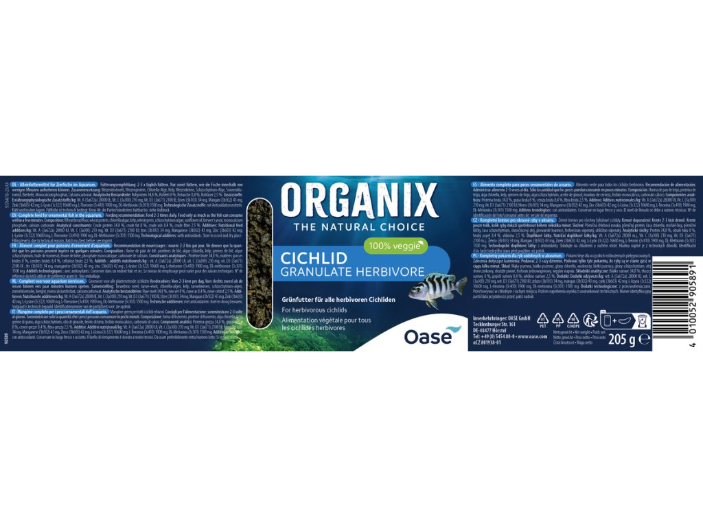 - Granule zahrnují všechny důležité prvky, které býložravé cichlidy potřebují pro zdravý a aktivní život