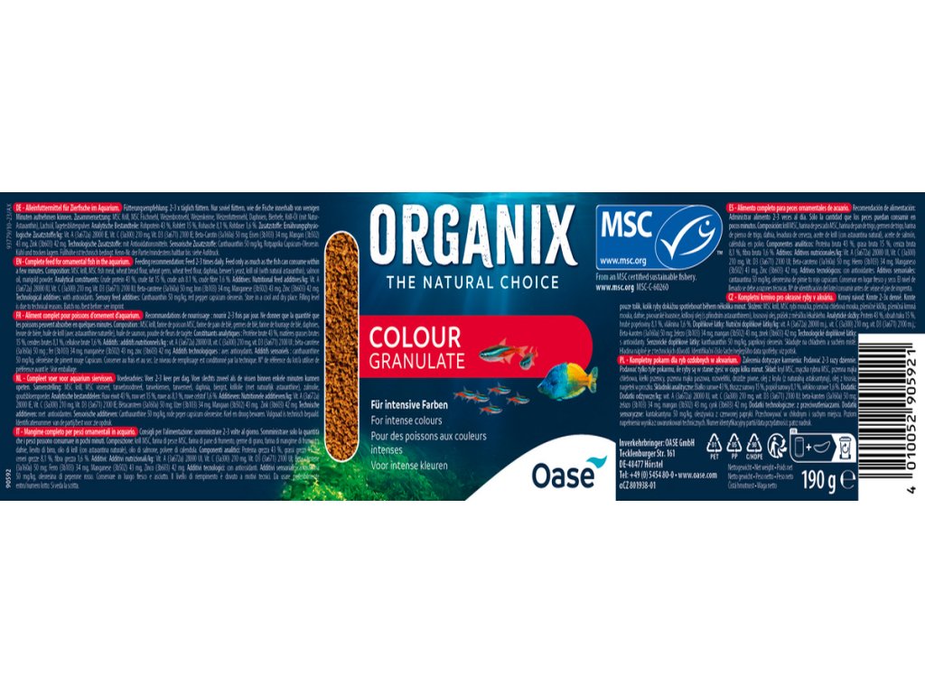 - Všechny suroviny z vody pro naše krmiva pro masožravé i všežravé rybičky pocházejí z rybářství respektující životní prostředí a jsou držiteli certifikace udržitelného rybolovu MSC