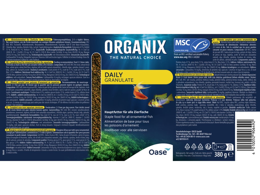 - Pro pestrobarevné rybičky - lososový olej, betakaroten a kanthaxanthin podporují výrazné zbarvení