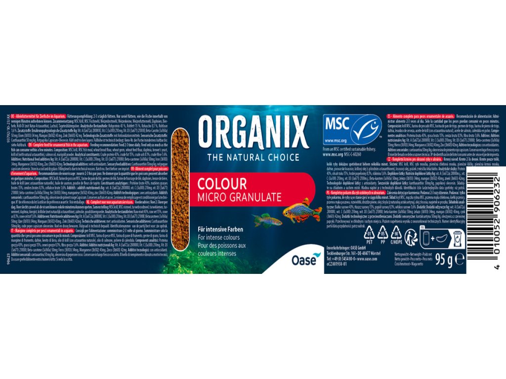 - Pro pestrobarevné rybičky - lososový olej, betakaroten a kanthaxanthin podporují výrazné zbarvení