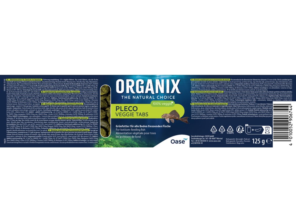 Akvarijní krmivo ORGANIX Pleco Veggie Tabs 250 ml