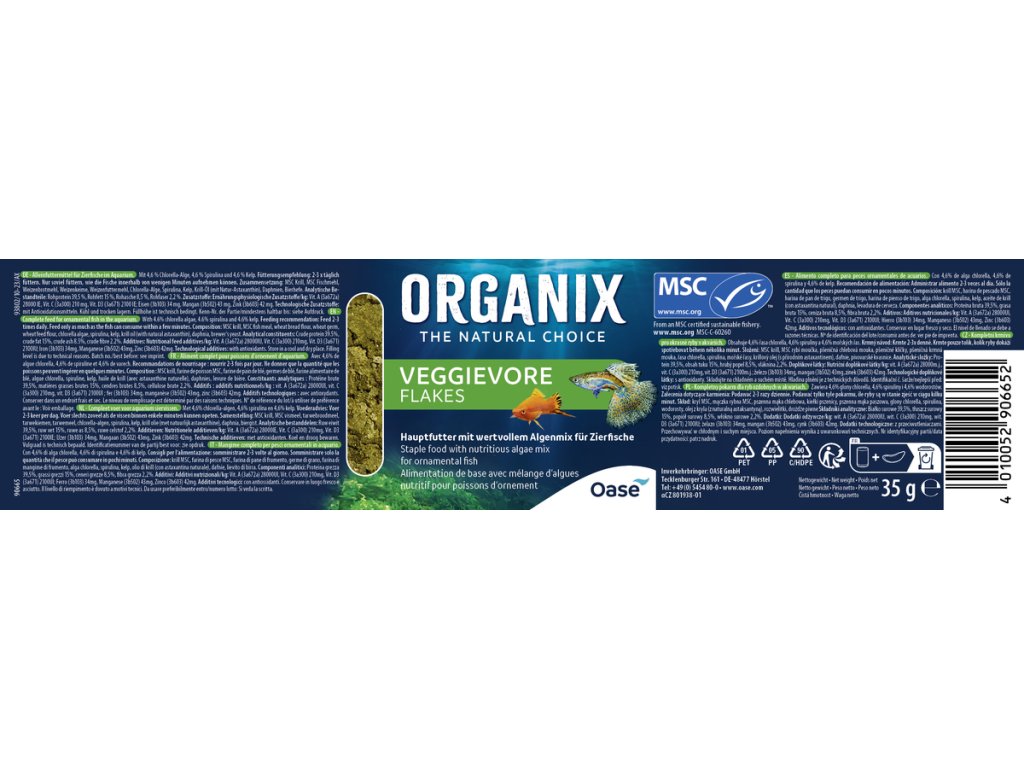 - Vločky obsahují - 4,6 % řasy chlorella, 4,6 % řasy spirulina a 4,6 % řasy kelp bohaté na minerály