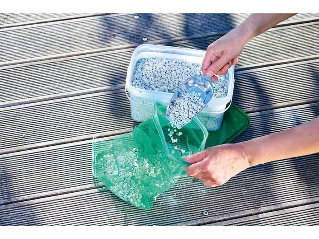 - Filtrační vak s filtračním materiálem se jednoduše vloží do vody nebo do filtračního systému