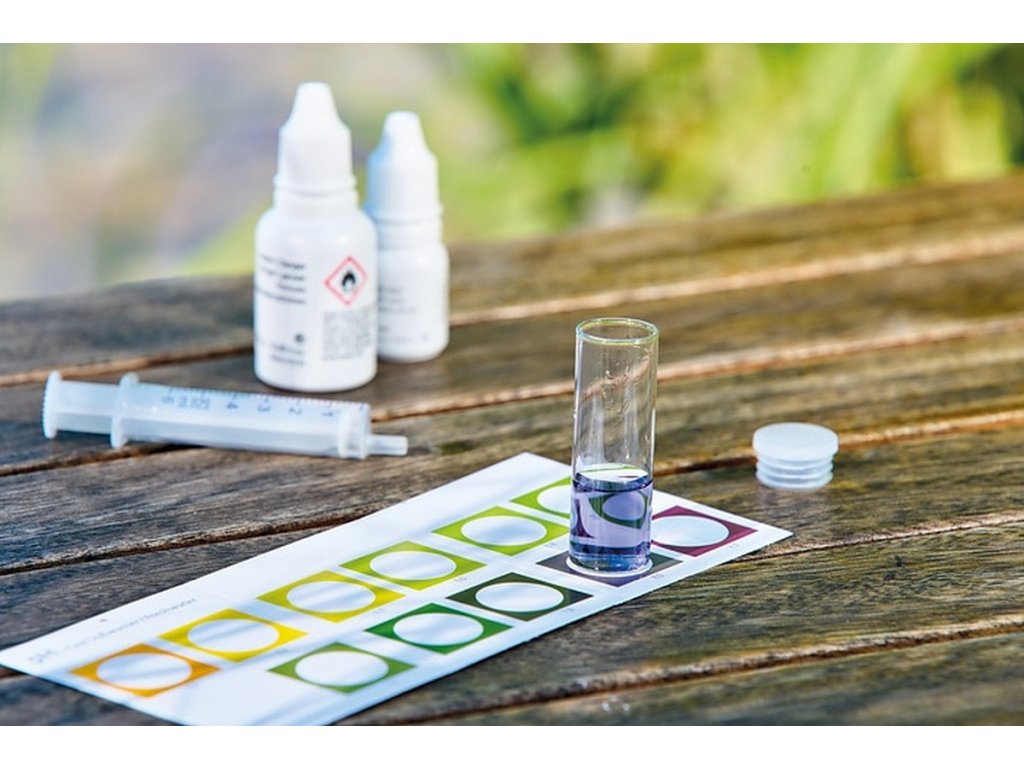 - Sada kapalinových činidel AquaActiv Profi-Set pro analýzu vody určuje 8 nejdůležitějších parametrů vody v jezírku: