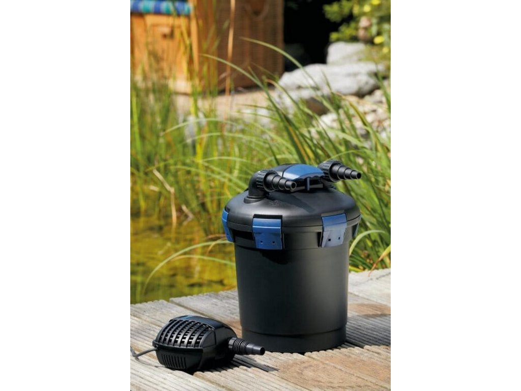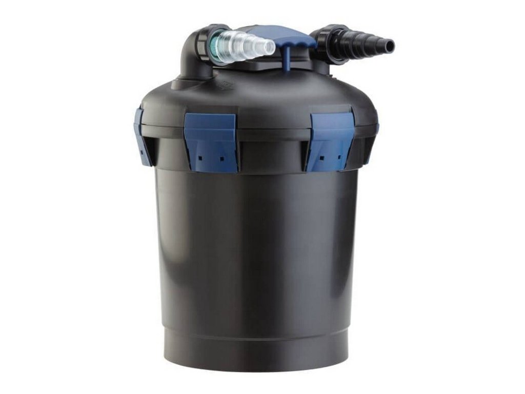 - Malý tlakový filtr z tzv. hobby třídy vhodný pro jezírka o objemu až do 6 m3 bez ryb