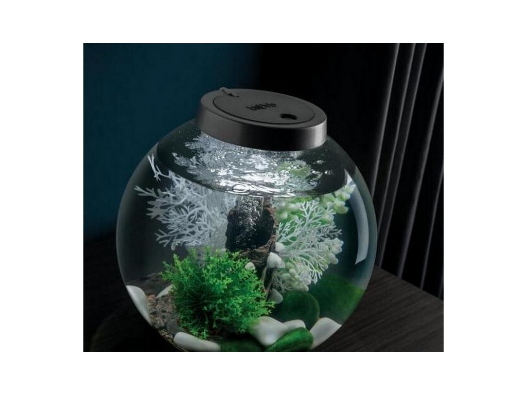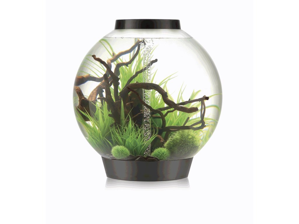 - Toto větší dekorativní akvárium v černém provedení na 60 litrů nabízí klasický kulatý design