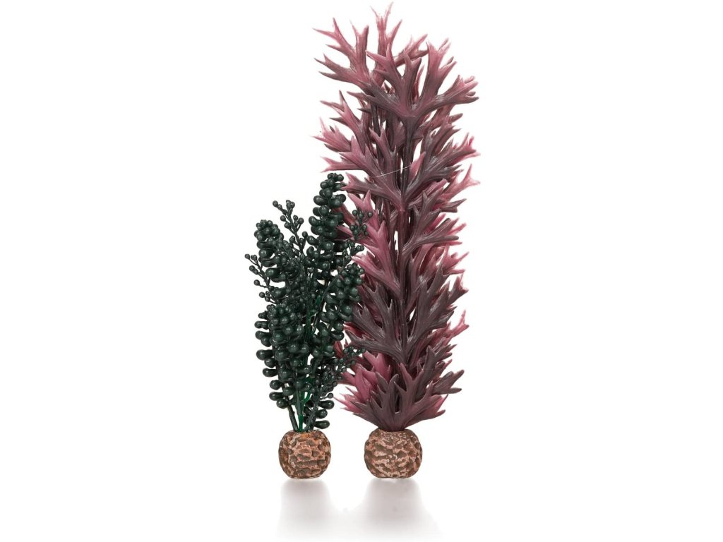 Sada plastových rostlin biOrb obsahuje jednu tmavě zelenou a jednu fialovou rostlinu pro zajímavě působící vzhled akvária