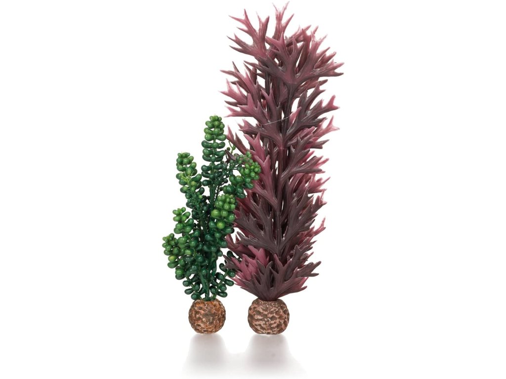 - Sada rostlin imitující mořské řasy obsahuje dvě přirozeně působící rostliny v zelené a fialové barvě