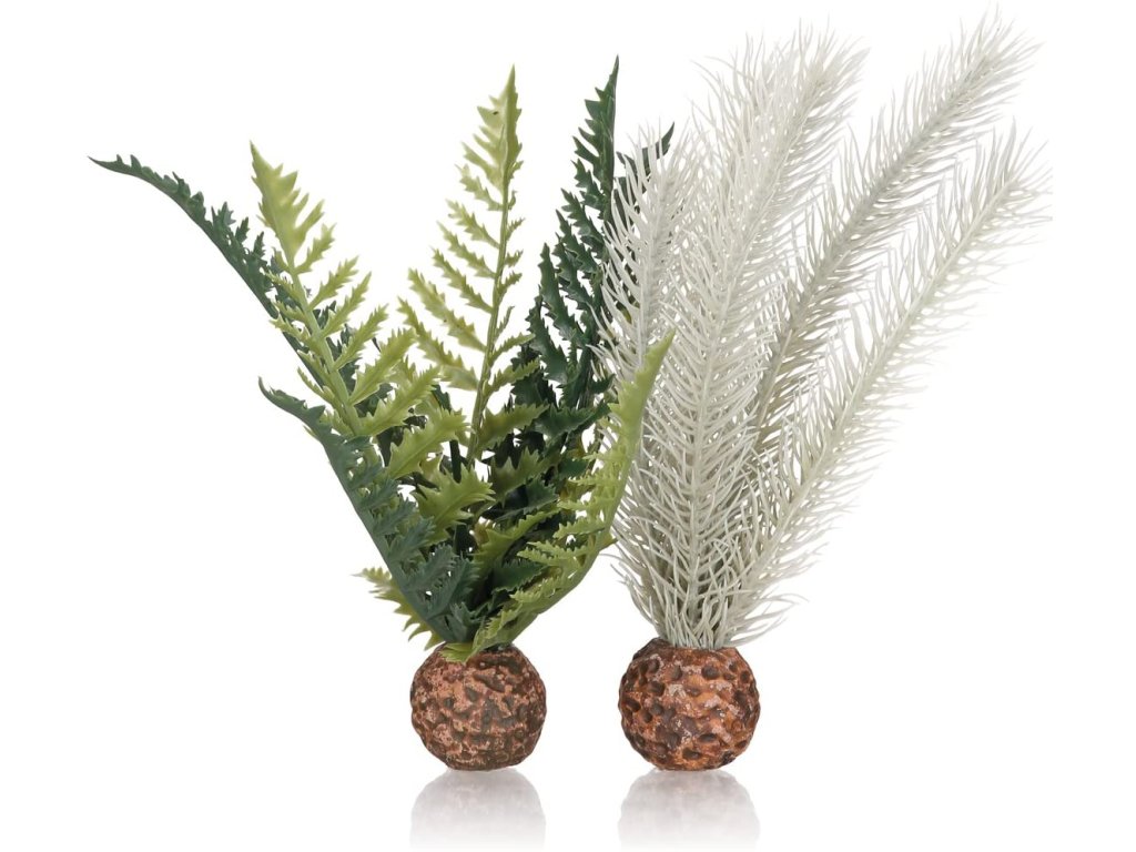 - Sada rostlin imitující bodlák a kapradí obsahuje dvě přirozeně působící rostliny v zelené a šedé barvě