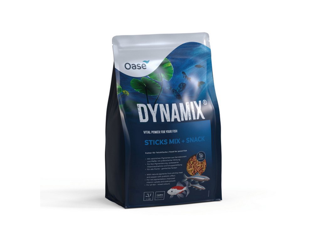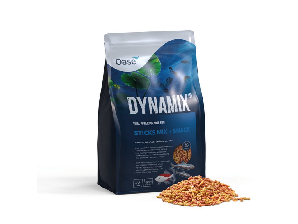 - Dynamix Sticks Mix + Snack je krmivo vhodné pro všechny okrasné ryby v jezírku v případě kombinovaného chovu přírodně a červeně zbarvených druhů