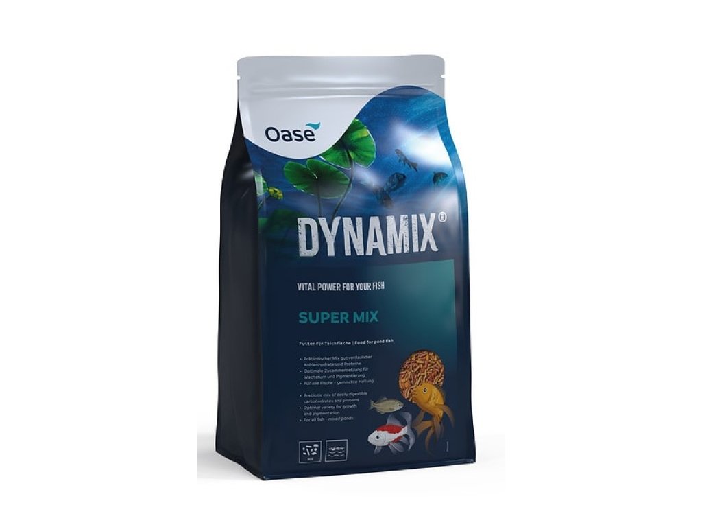 - Dynamix Super Mix pro všechny okrasné ryby a kapry koi u kombinovaného osazení jezírka - podporuje růst ryb, tvorbu šupin a zabarvení a je příjmem vitamínů