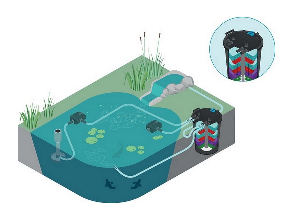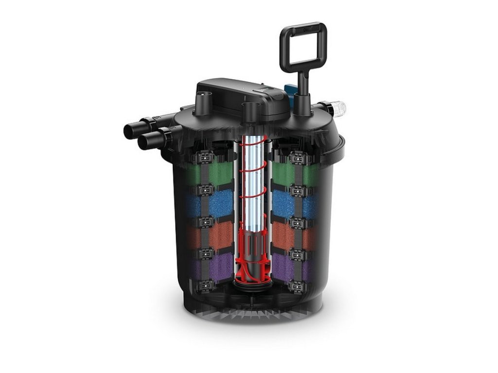 - Vysoce účinný tlakový filtr FiltoClear 60000 se silnou mechanickou a biologickou filtrací a vysokým UVC výkonem 84 W udržuje jezírka o objemu až 60.000 l čistá a zdravá
