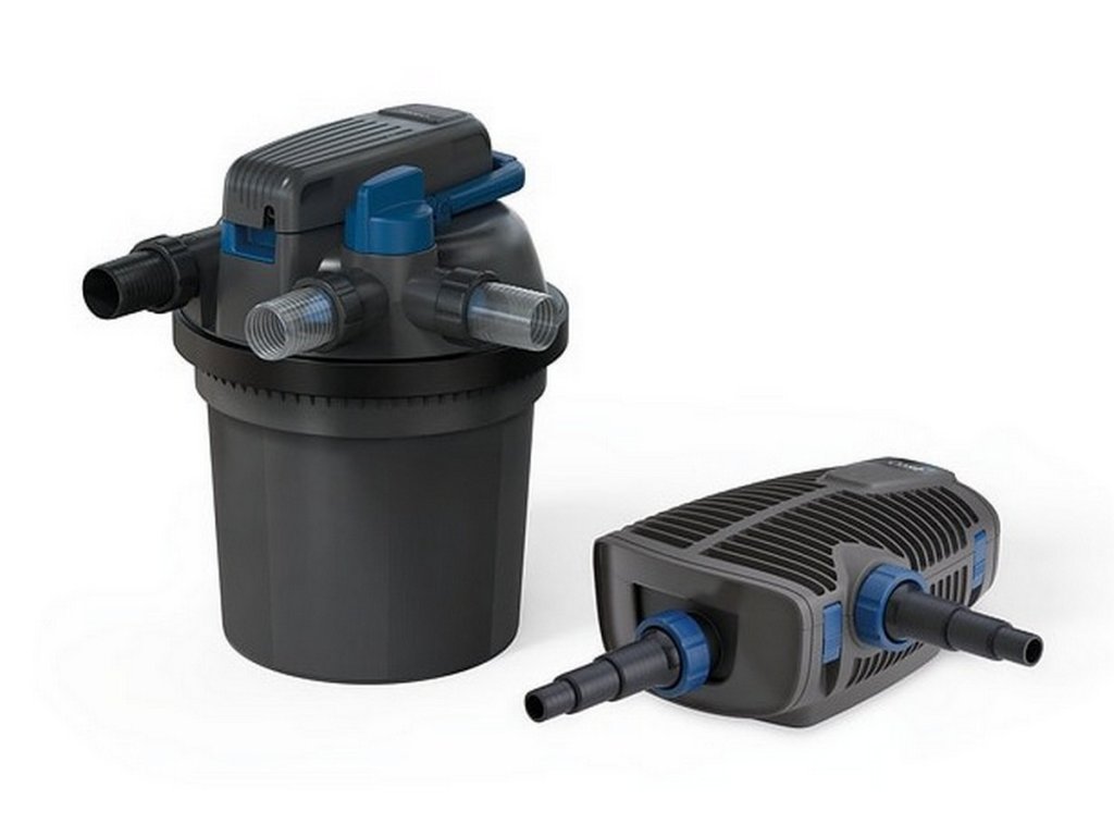 - Kombinace tlakového filtru Filtoclear 13000 OC s integrovaným UVC čisticím zařízením (UV lampa 24 W) a energeticky efektivním filtračním čerpadlem AquaMax Eco Premium 9000 čistí jezírka a potoky do objemu 13.000 litrů