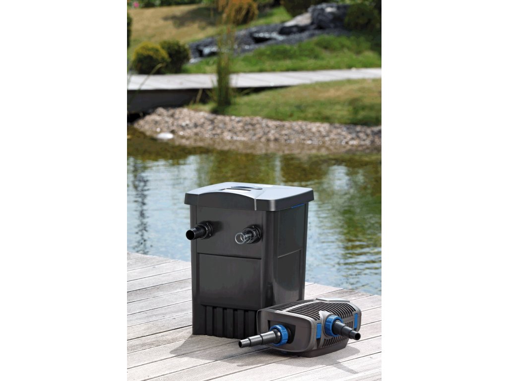 - FiltoMatic Set 7000 - dokonalá kombinace průtokového filtru FiltoMatic 7000 s integrovaným UVC čisticím zařízením (UV lampa 11 W) a energeticky efektivním filtračním čerpadlem AquaMax Eco Premium 4000