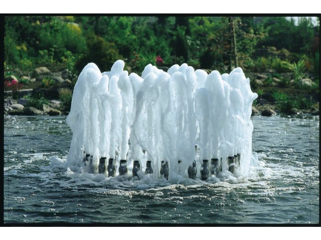 Velice efektní tryska, která je nezávislá na stavu vodní hladiny, pouze je nutné instalovat nad úrovní hladiny. Připojení na závit 1" (25mm), materiál trysky: nerez/plast.Vhodná čerpadla pro Schaumsprudler 35-10 E- Aquarius Fountain Set Eco 5500:pro výšku fontány 80 cm