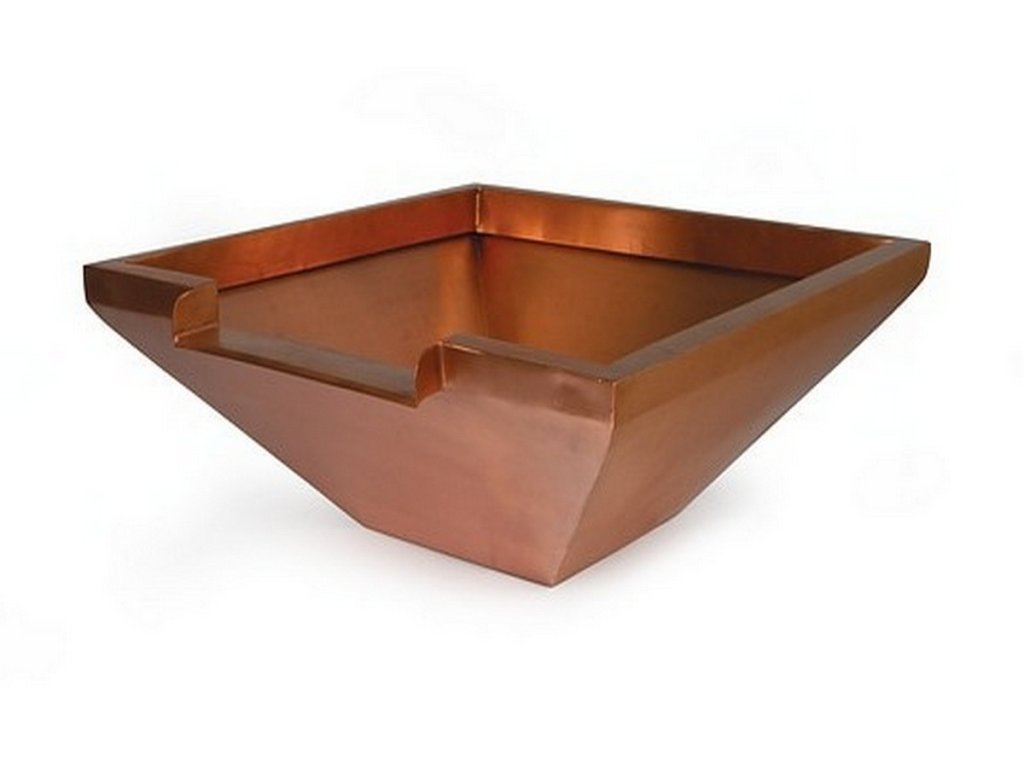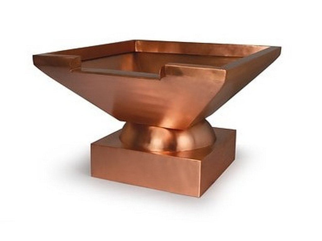- Designový prvek v podobě čtvercové mísy vyrobený z pravé mědi