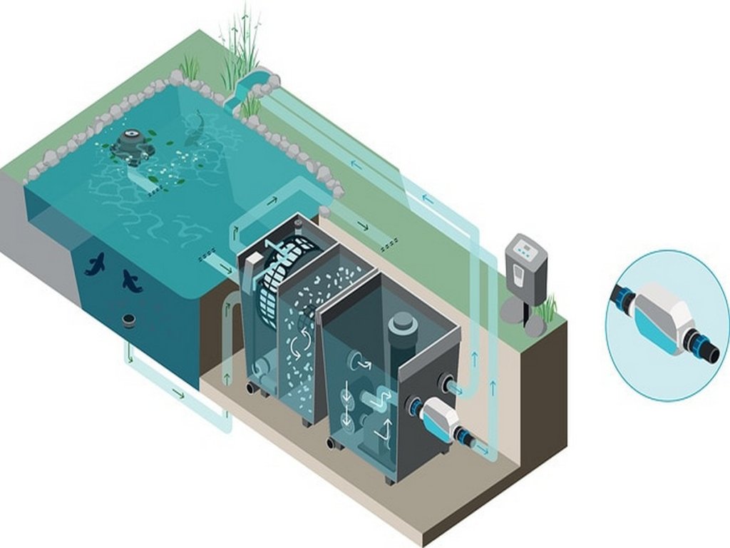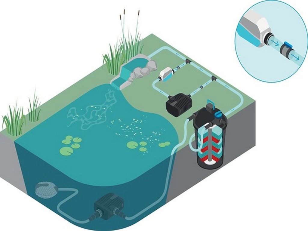 - Doporučení: průtok 300 l/hod pro každých 10 m³ objemu jezírka