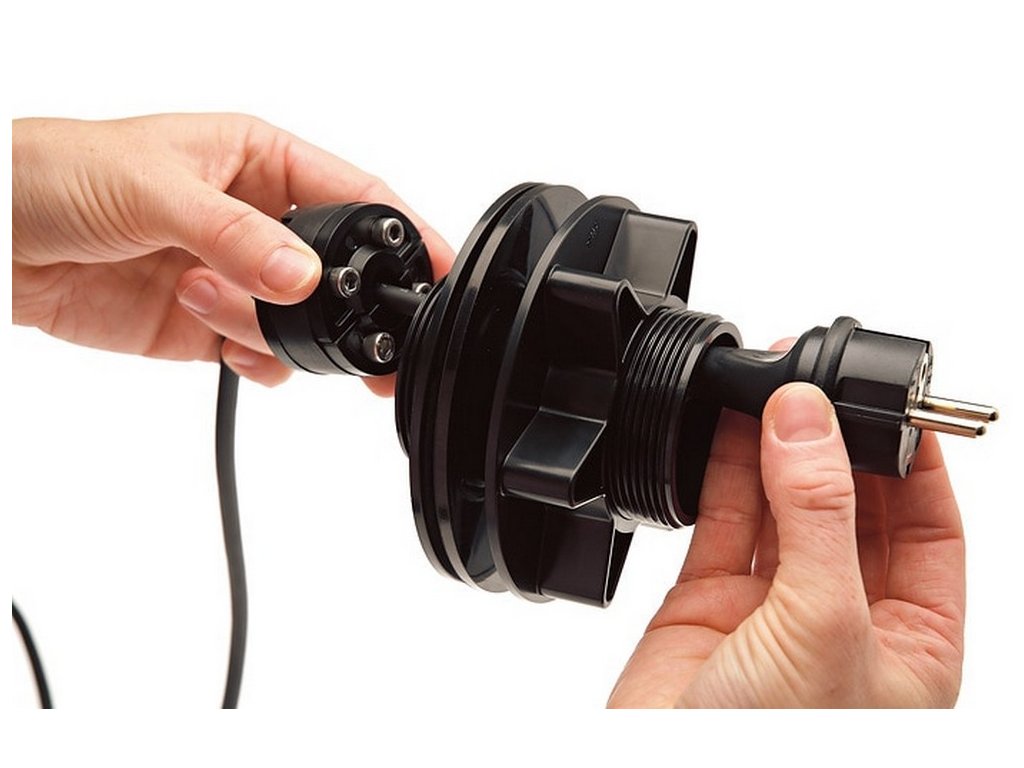 - Hadice od ¾" do 2" nebo kabely o průřezu 3-9 mm² lze bezpečně a snadno vést skrz vložku nebo bazén