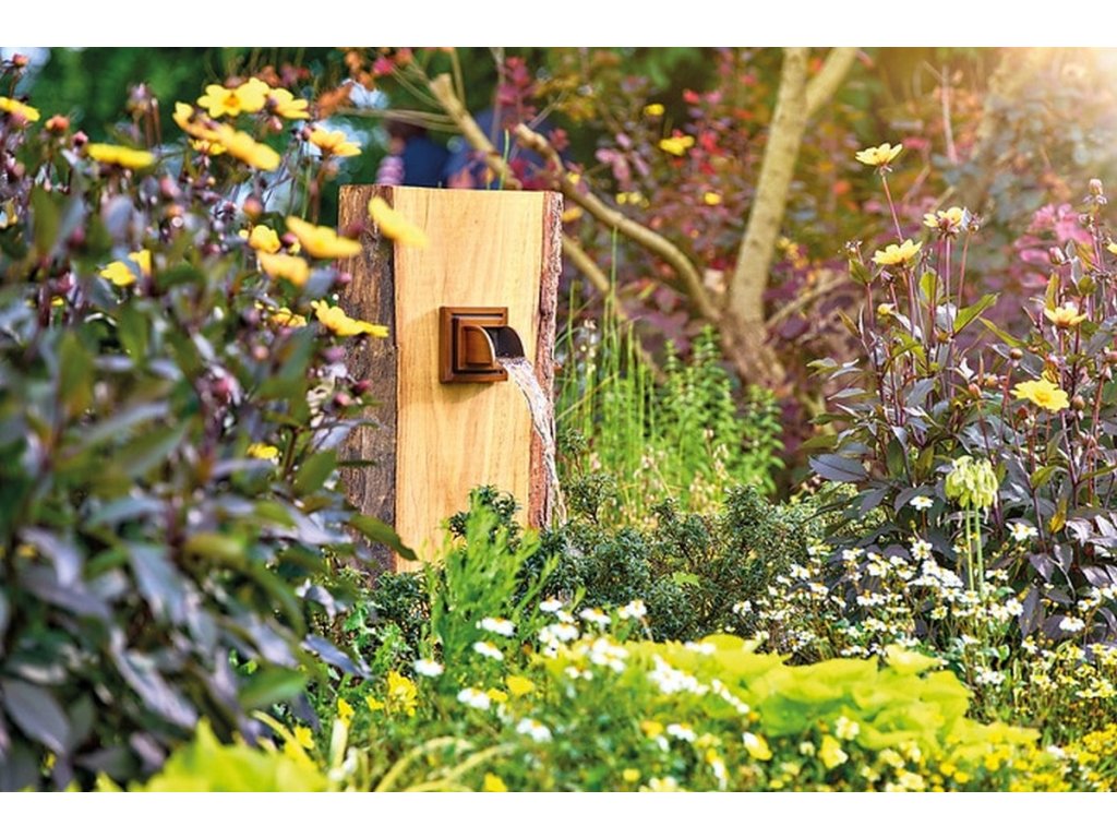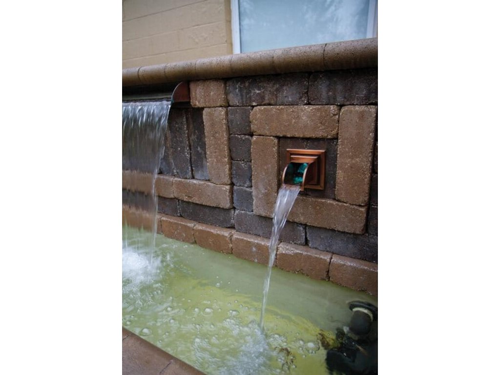 - Nástěnný chrlič měděného vzhledu jako ideální doplněk k vodopádům OASE