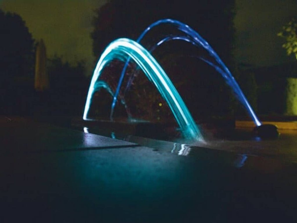 - Barevně zářící laminární vodní oblouky pro mimořádné kouzlo v zahradě