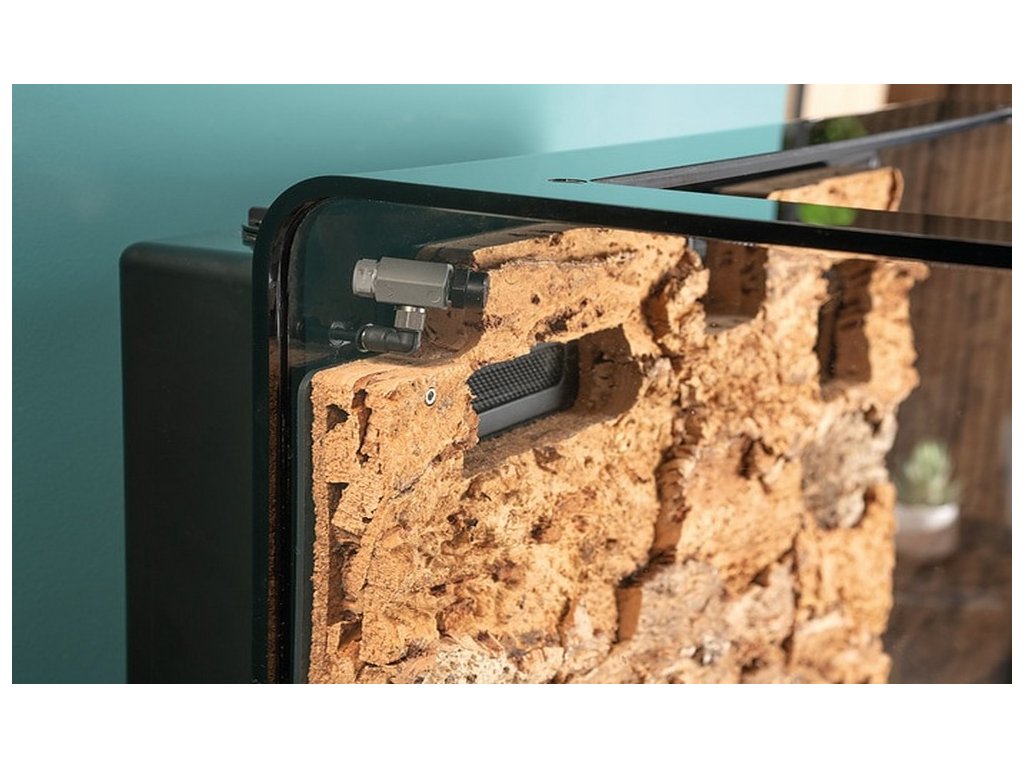 - Zadní stěna terária je zhotovena z přírodního korku v barvě tmavého dubu pro přirozený vzhled